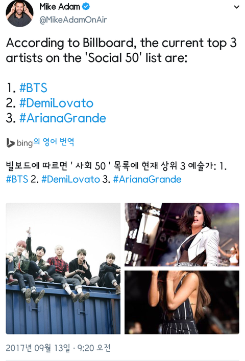 빌.보드 소셜차트50 현!재 top3 1위 방탄