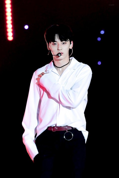 ※흰 셔츠+초커+레드벨트+황민현=봇 현망진창