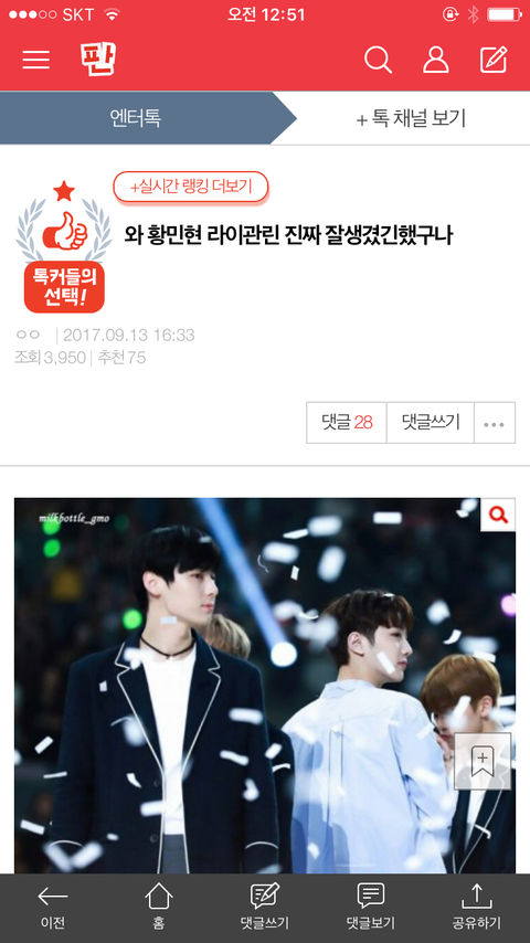 댓글에 어그로 안티들 꼬이는거보다는 우리가 가서 좋은댓글 다는게 좋을것같아 이왕 톡선간거!! 가서 좋아요+좋은댓글몇개 달고오자