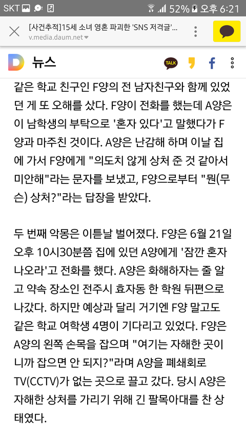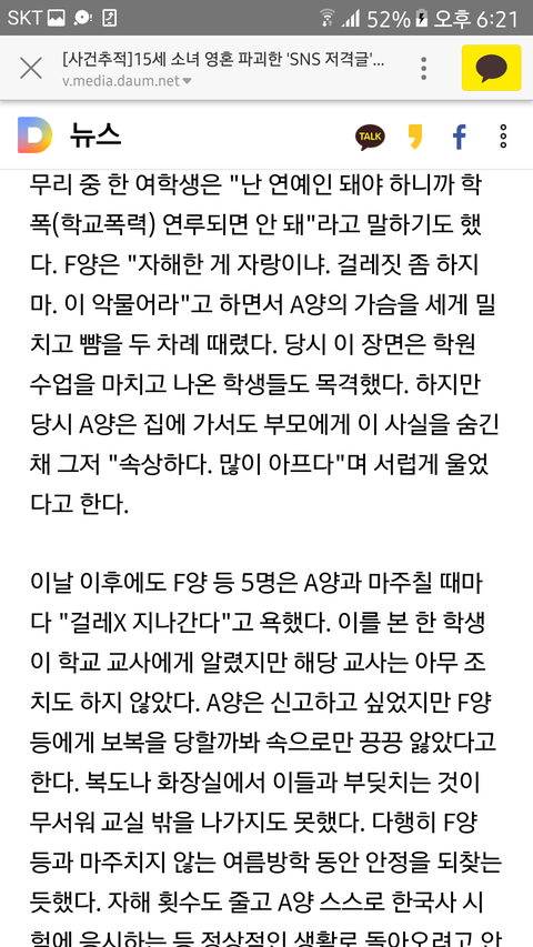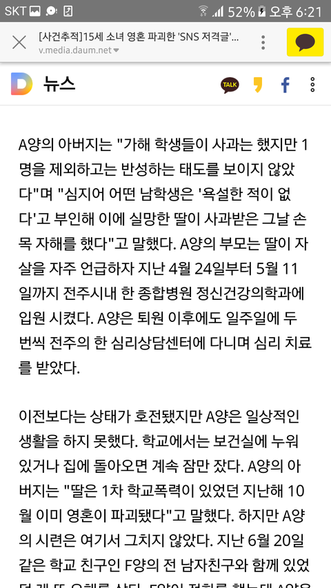 내일 15일 학교에서 학교폭력위원회가 열립니다. 소중한 한 생명을 짓밟은, 저렇게 끔찍하고 잔인한 짓을 저지른 살인자들은 처벌 받아야 마땅하고, 정당한 처벌을 받기를 원합니다. 많은 분들의 지속적인 관심과 도움이 필요합니다. 가해자이자 살인자들인 저 학생들에게 올바른 처벌이 내려지기를 간절히 바랍니다. 아래 사진들은 기사내용을 간단히 추린 내용입니다. 자세한 내용은 링크를 통해 들어가서 읽어주시면 감사하겠습니다.