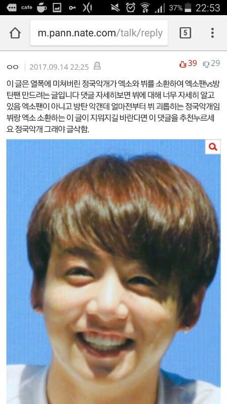 방탄 정국 악개가 뷔까는글을 엑소팬인척씀