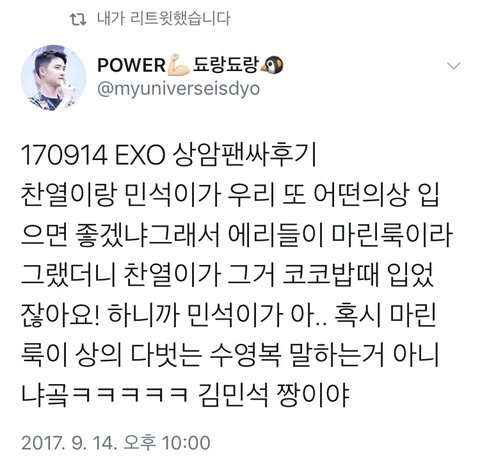 시우민이 생각하는 마린룩ㅋㅋ(팬싸후기)