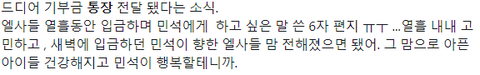 그냥 통장이 아니라 팬들이 기부한 내역이 들어간 통장이래