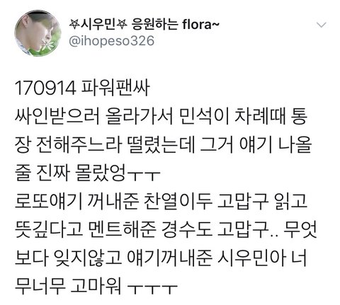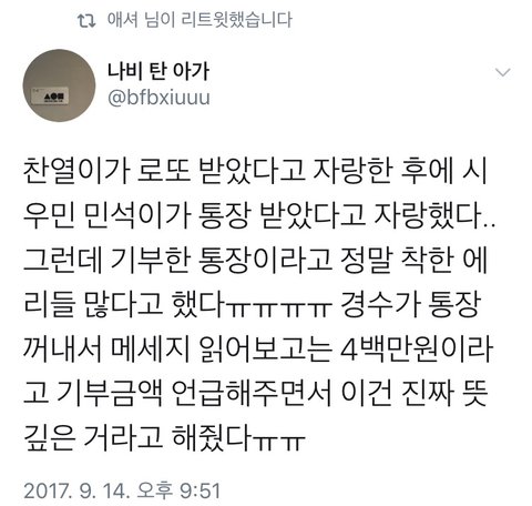 팬들한테 통장 받은 시우민