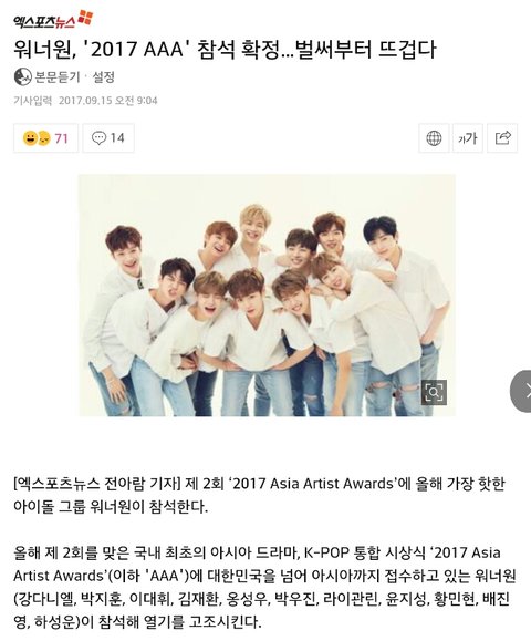 워너원 2017 Asia Artist Awards 참석 확정