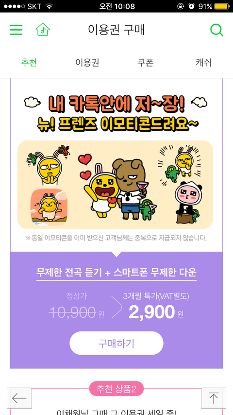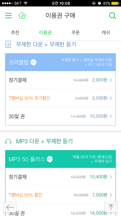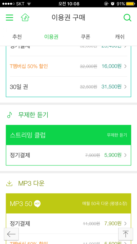 모바일스트리밍권 달마다 끊어서 사용해왔는데