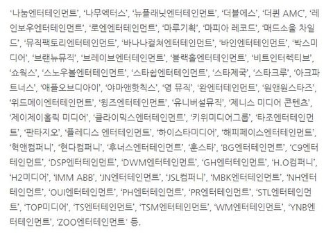 이 외에 90여개 소속사가 참여한다고 함 ㅇㅇ