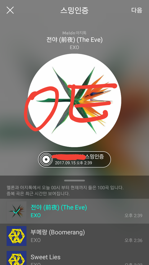 엑소 음방100회 1위
