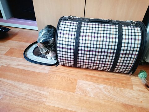 지퍼잠긴걸 뜯고 나와서 플라스틱 이동장을