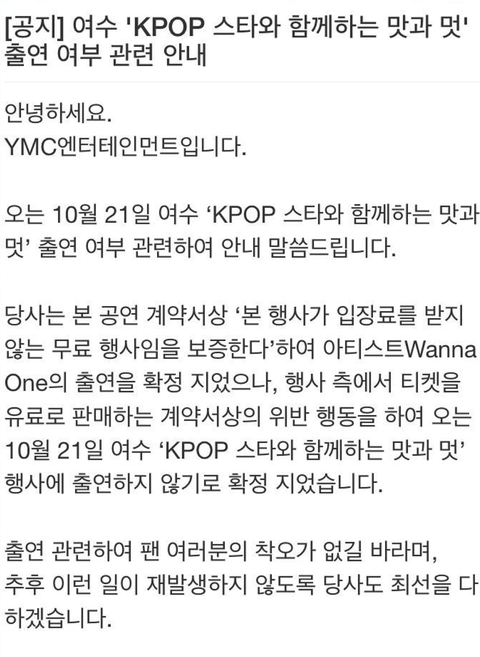 여/수 케/이팝 취소래~