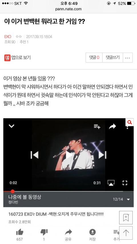 이거 내가 올린건데 ㄹㅇ ㅈㄴ 궁금함 ,, 변백현이 뭐라고 한 지 아는사람