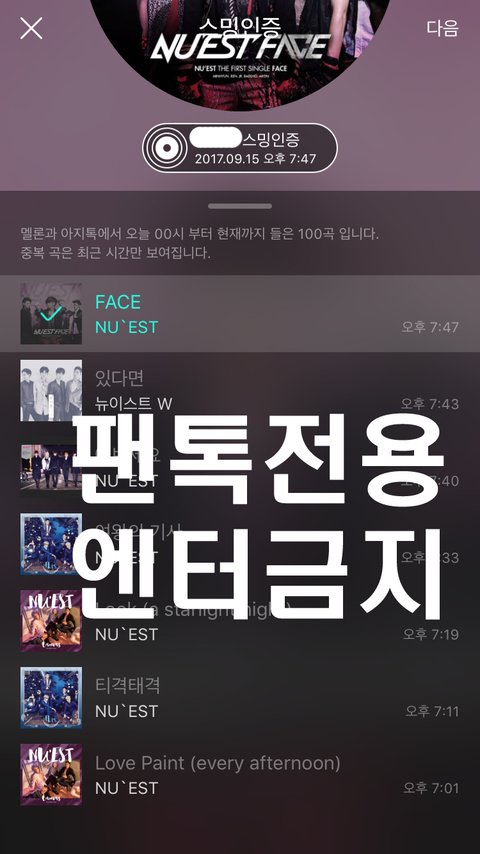 여러 러브들이 참여할수 있게 뉴이스트 음원총공연합 지니 음악나누기 계정(twitter @nuest_genie)에서 제공하는데, 러브들도 언제든 음악나누기 제공이 가능해