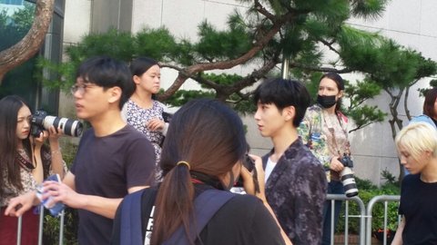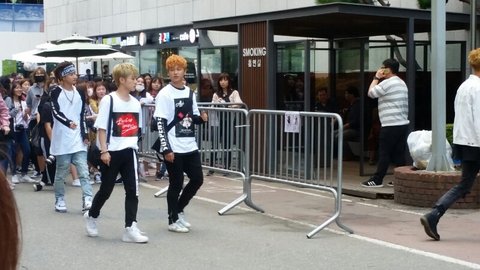 누군지 들었는데 잊어버렸어 모자 푹 눌러쓰고 가는데 얼굴 진짜 작았어 들러붙는 팬들때문에 얼굴을 안 보여주는게 좀 아쉽지만...