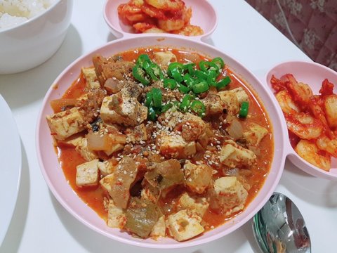 다들 불금 보내고 계신가요? 즐거운 금요일 밤이네요ㅋㅋㅋ전 집에서 뒹굴뒹굴 판 보다가 오랜만에 최근에 만들어 먹은 집밥 사진들 가져왔어요! 그럼 바로 ㄱㄱㄱ마파두부에요. 두반장이 없어서 된장 고추장으로 대충 양념해서 만들었어요. 전분 물로 걸쭉하게 농도 조절하고 밥 비벼 먹으니 꿀맛!마파두부랑 같이 먹으려고 만든 크림새우랑 계란말이에요