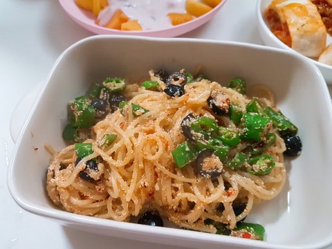 앞다리살 양념 해 만들고 콩나물 듬뿍 올려먹었어요! 깻잎이 초라해보이네요ㅋㅋㅋㅋㅋ맛은 있었는데ㅠㅠ명란파스타에요.