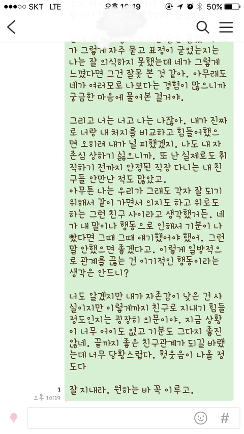 이런 글을 받고 나니 제가 이상한건지 생각이 들 정도고 자기가 뭔데 친구를 하니 마니 통보하는 것도 참 웃기는 일이네요.