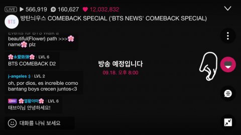20170918 BTS DNA Comming Soon 태앱 하트1억모으기는 라이브 전까지가 목표구 모바일루 들어가서 왼쪽에 일정표 누르면 18일날짜에 있어 그거 눌러서 하트 쏴줘!!