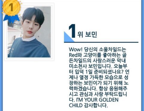 지금은 둘셋이라고 하는데 혹시 나중에는 사진에 나온것처럼 "I'M YOUR Golden child" 이거 하지 않을까