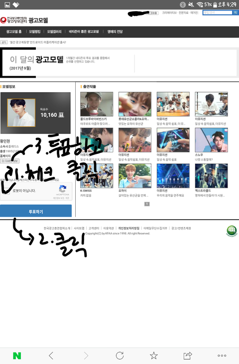 사실 로동은 그닥 하라고 장려하고 싶지 않은데 지난달 광고 투표 순위로 누가 민현이 실제 인지도 낮다면서 까내리는 글을 봐서 이번달엔 1등이나 2등은 못하더라도 적어도 상위권 내에는 머무르게 해주고 싶어 계정은 초록창 파란창 네이트 이렇게 3개 만들 수 있는데 네이트가 계정 3개 정도 만들수 있어서 실질적으로 따지면 계정 8개로 투표 할 수 있어 혹시 부모님 폰으로 가능한 미녀단들 있으면 부모님 폰으로도 계정 만들어서 투표하면 좋을 것 같애ㅎ
