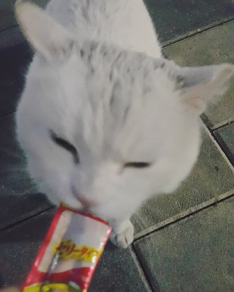 츄르스틱고 있는 흰둥이 츄르스틱만 보면 환장을ㅋㅋㅋ