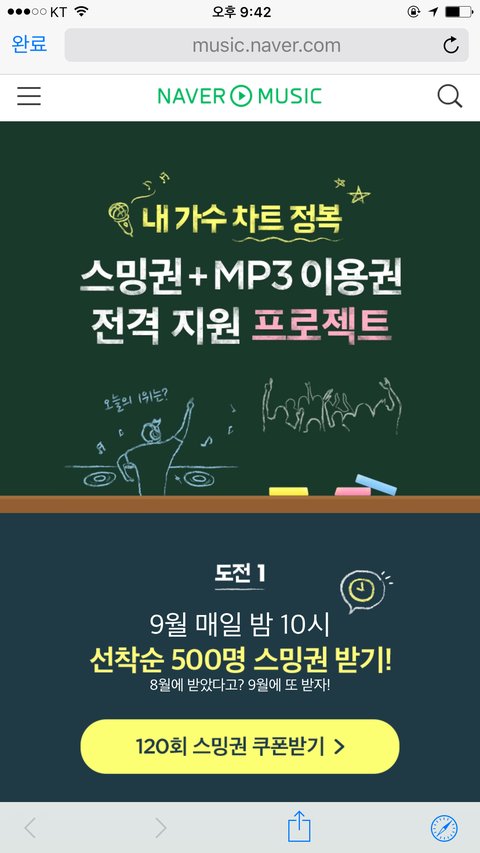10시에 네이*뮤직 스밍권얻을수있대!!