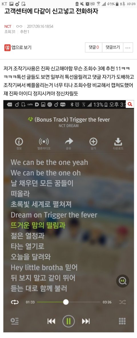 다같은 애인거 같은데 스밍인증 도용하네?? ㅋㅋㅋㅋㅋ 고객센터 신고 하거 하는건 좋지만 우선 ㅅㅁㅇㅈ부터 하자 ㅌㅌㅋ 음원 스밍못하면 뮤비스밍이라도 좀 하지 ㅋㅋㅋ