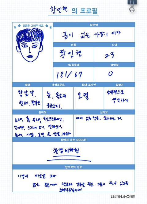 황민현에 대한 고찰 ______ 황제님의 프로필