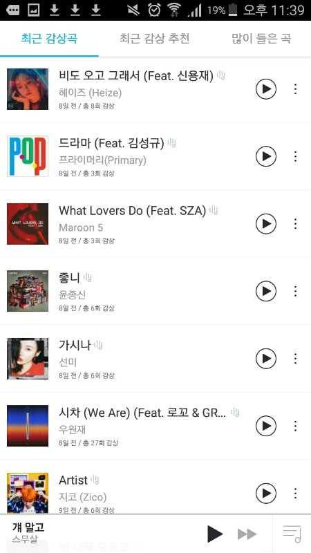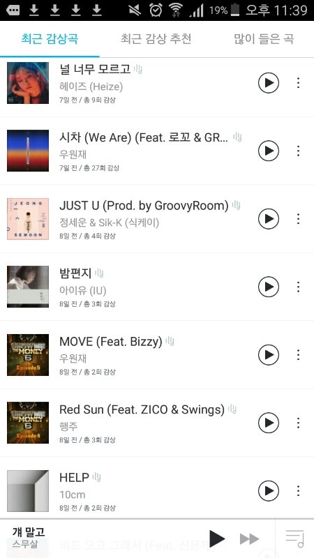 그 혹시나 해서 전에전에 들었던 지니 이용기록으로 머글인증..