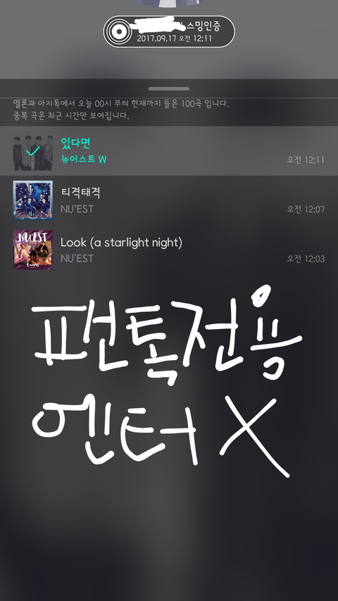 열두시 지나서 스밍목록 리셋됐어ㅜ