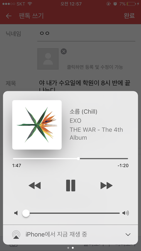 야 내가 수요일에 학원이 8시 반에 끝나는디