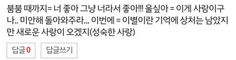 마지막쯤에 이별 어쩌구 상처라고 나와있잖아 근데 오늘 뜬게 배경이 총이였다면 그거 배경에서 깨진게 자신의 상처를 총으로 맞은 걸 표현한게 아닐까,..?!?!?!?!?????? 나만 그렇게 생각해 ???? (문제시 빛삭)