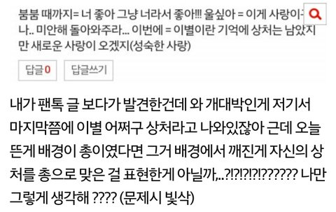 이 글도 그렇고 24시간 꺼지지 않는 심작박동을 총에 맞을때 그런것같고 임팩트는 총을 쏘거나 맞았을때 그 충격을 임팩트라고 표현한것같고 저번에 뿌앱에서 순영이가 손으로 총 모양을 표현했고 이걸 보면 빼박 총이야