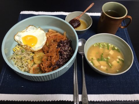 비빔밥 생각나서 나물 다 넣고 제육볶음도 넣고 비빔밥
