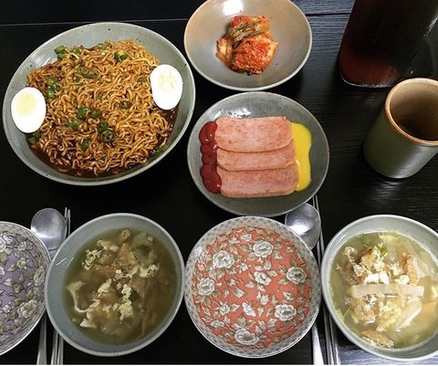 다리는 파전하고 스팸김치찌개도...