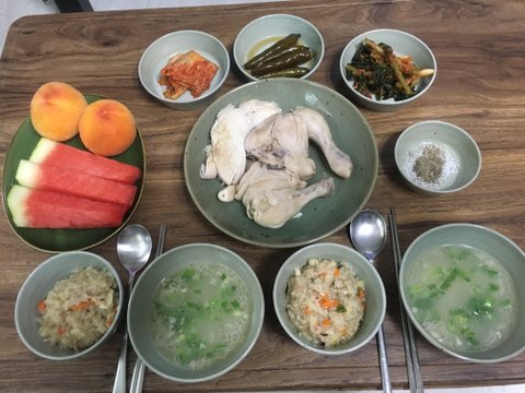 복날에 해먹은 백숙 그리고 닭죽 과일 ^^