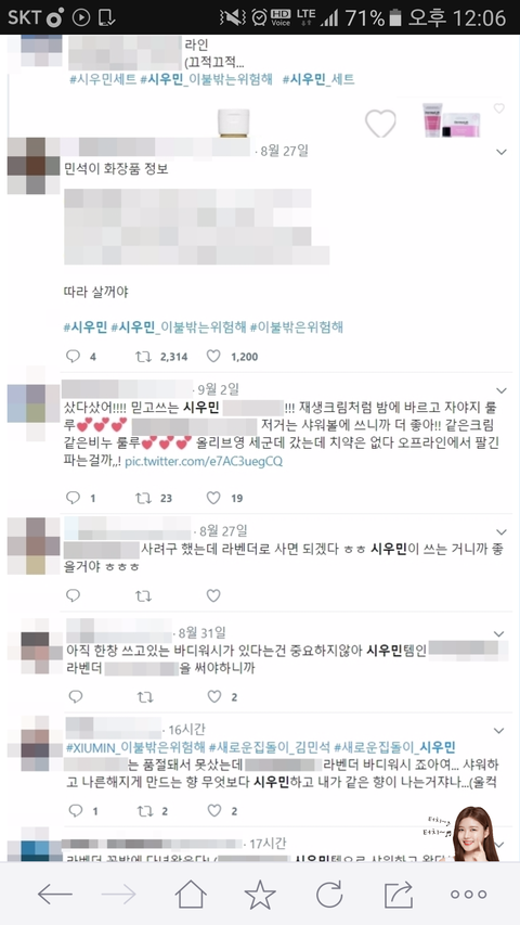 시우민 화장품 완판남