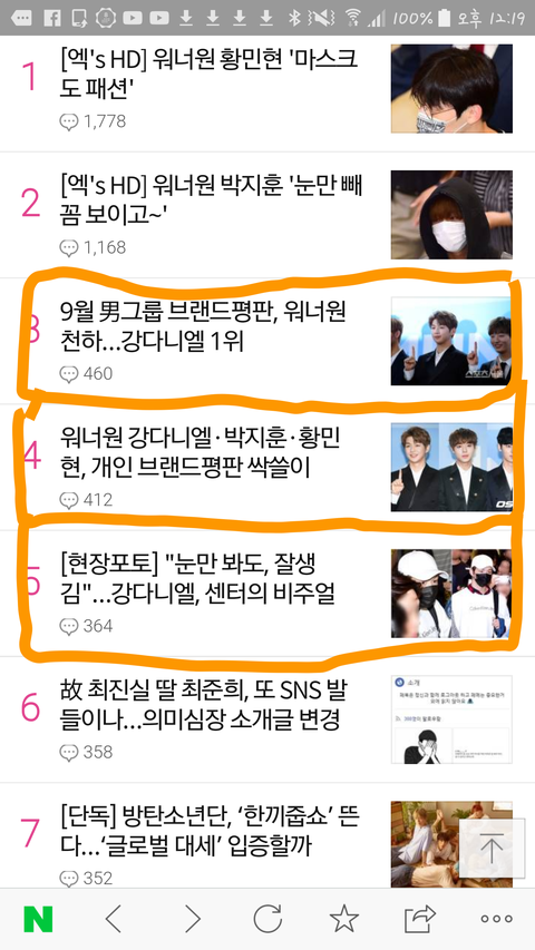 랭킹에 우리 녤이 기사가 대체 몇개야...