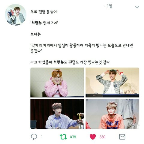 "각자의 자리에서 열심히 활동하여 더욱더 빛나는 모습으로 만나면 좋겠다" 라는 말 너무 공감되고 우리 브랜뉴팬들 또한 바라는거