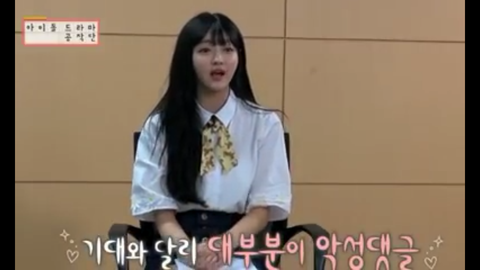 그래서 얻은 건 오마이걸 팬들과 악플과 루머야 몇개월 전에 아이돌 드라마 공작단이라는 레드벨벳 슬기 마마무 문별 소나무 디애나 연습생 소희 소미 러블리즈 수정이 나오는 프로그램이 있었는데 거기서 그 프로그램에 출연하는 출연자들을 인터뷰했는데 거기서 유아가