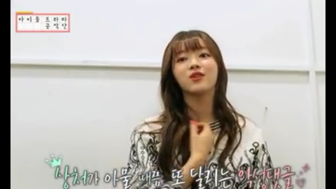 여기도 너무 마음이 아팠어 오마이걸을 알리려고 가장 먼저 예능에 나가서 이것저것 다 하고 정말 다른 멤버들보다 몇개가 더 많은 스케줄도 다 웃으면서 혼자 소화하고 멤버들도 그 노력을 알기 때문에 효정은 유아와 영상통화를 하며 응원하기도 하고 밥도 해주고 다른 멤버들도 인터뷰에서 유아가 힛 더 스테이지라는 스케줄이 있었는데 그 힘들고 아크로바틱한 안무들을 하고 오면 다리에 시퍼렇게 멍이 있는데도 괜찮다고 하며 웃는 모습을 보고 마음이 아팠다고 했어