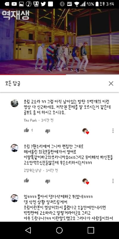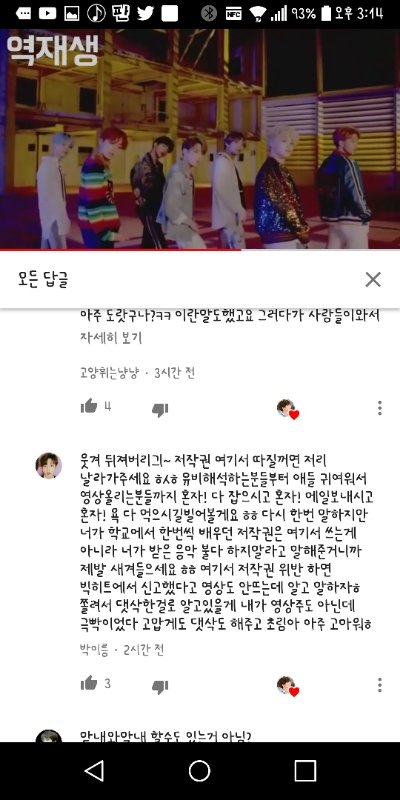 이거말고 엄청난데 조금만 캡해서가지고왔어..댓글이 엄청달리더라고...영상올린사람은 쉴드치는사람함테 하트만 주고있고... 어떻게해야할지모르겠다..