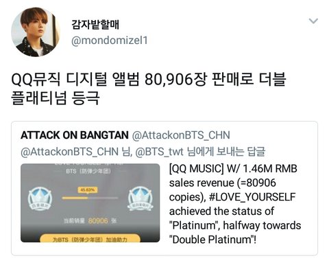 Q/큐 뮤직 더블 플래티넘 등극