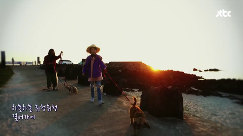 하늘하늘 휘청휘청 걸어가네