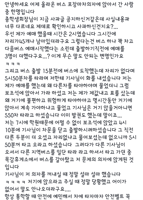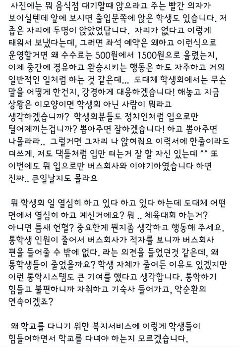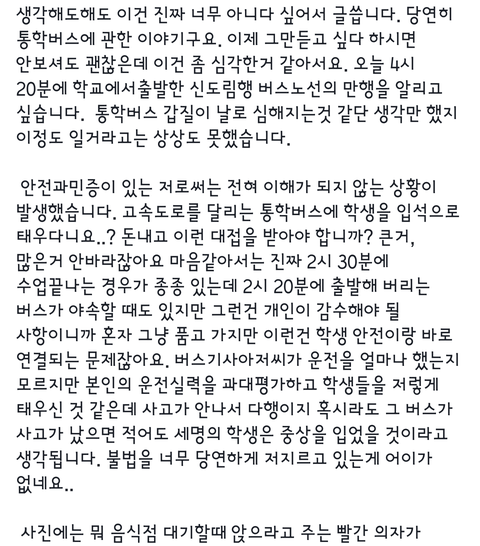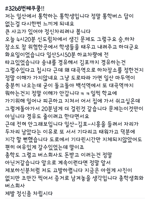 저를 비롯한 많은 학우들의 안전을 위협하는 버스회사를 고발합니다