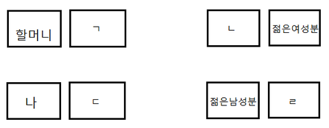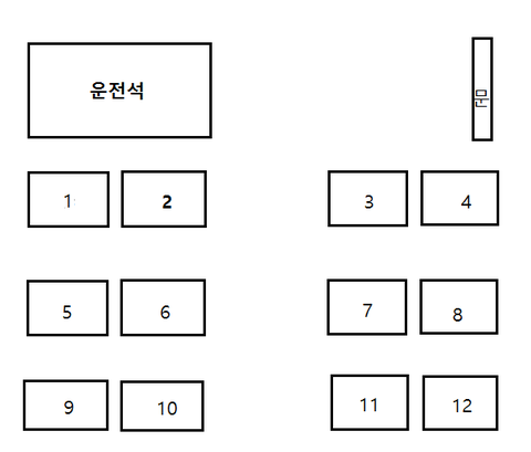 (ㄱ, ㄴ, ㄷ, ㄹ로 표기한 좌석은 모두 공석이었습니다)