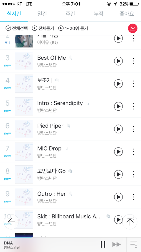 진입 1위 및 3위부터 줄세우기! 화띵 아미들!!
