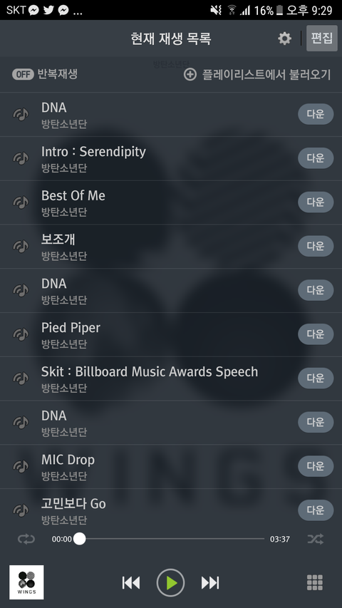 덕질 첨이라.. 재생목록도 촘이구 멜론자체가 처음인데 이거 맞아? 리스트도 이거맞아? 밑에부터 담아지길래 끝부터 담앗어.