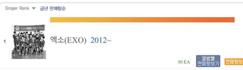 원터차트 현재 엑소 올해 앨범 판매량인데 뚫고 나가겠다 아주 그냥 나가버려라!