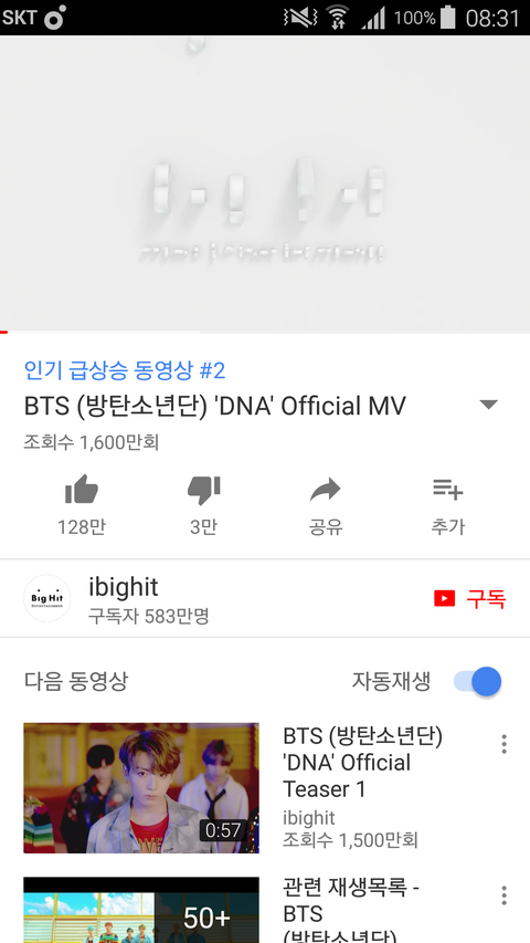 +)8:31a.m.(뮤비 공개 후 약 14시간 반) 1600만뷰