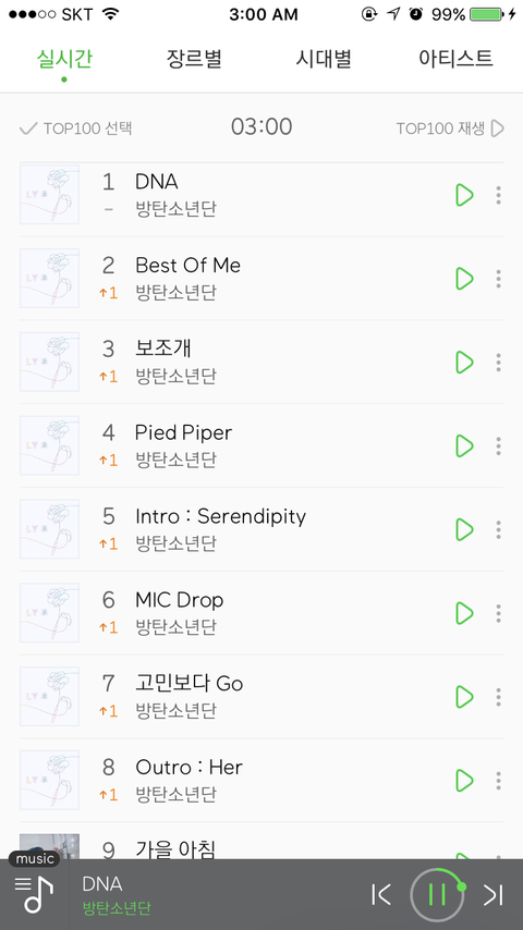 @3시 정각되면 바로 첫 곡 dna 누르기@